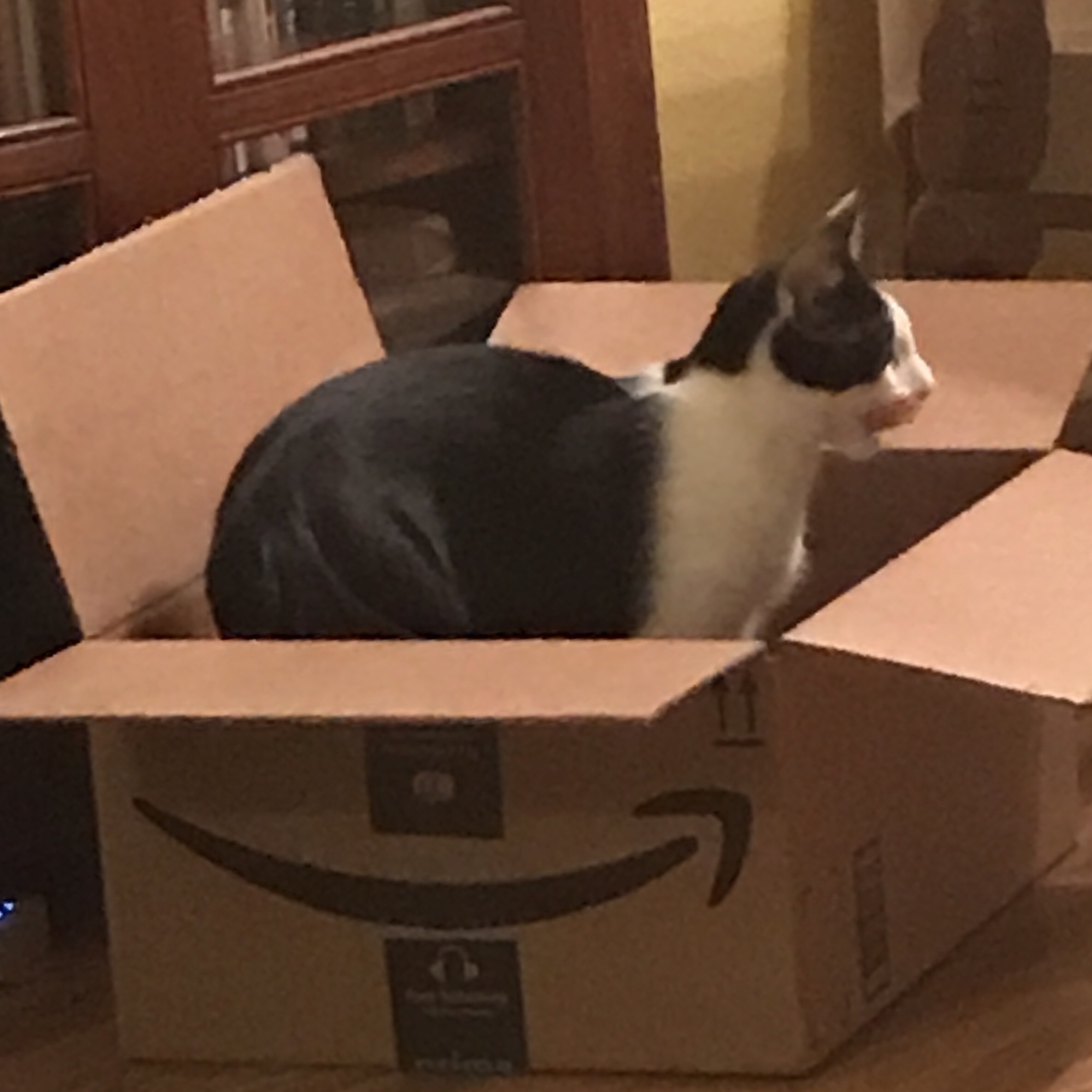 There are three cats in my house, and they love it when I receive deliveries. We have boxes to jump into and hide. Dot, the rascally kitten probably has the most fun making himself small at the bottom, then pouncing on his sister.